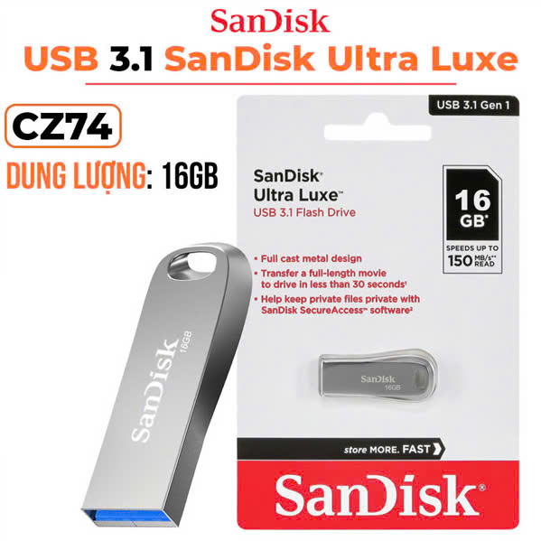 Đặt mua USB SANDISK 3.1 ULTRA LUXE CZ74 16GB