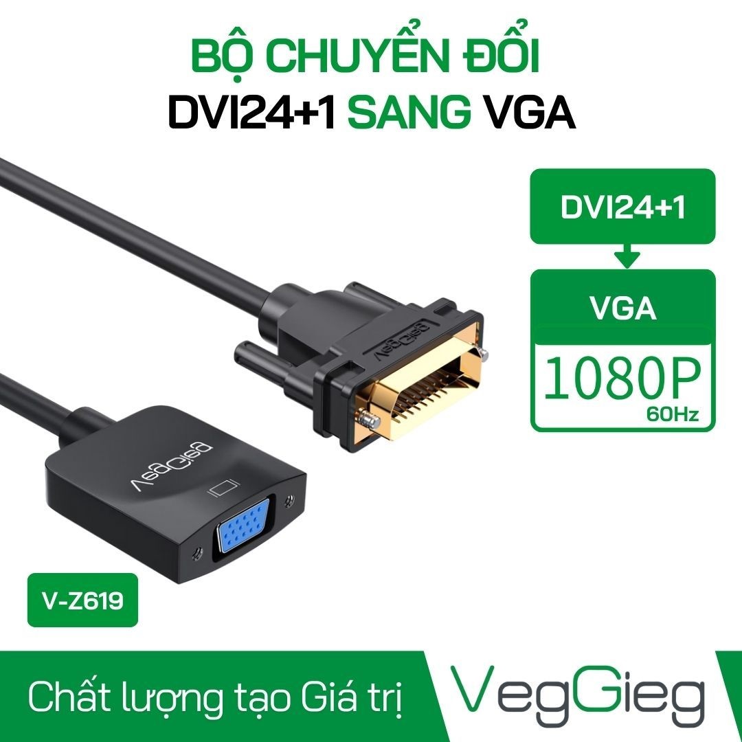 BỘ CHUYỂN ĐỔI DVI (+) SANG VGA (-) VEGGIEG V-Z619