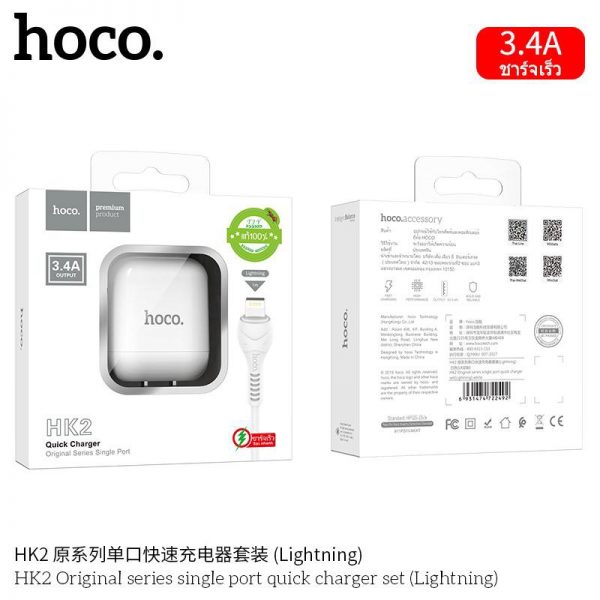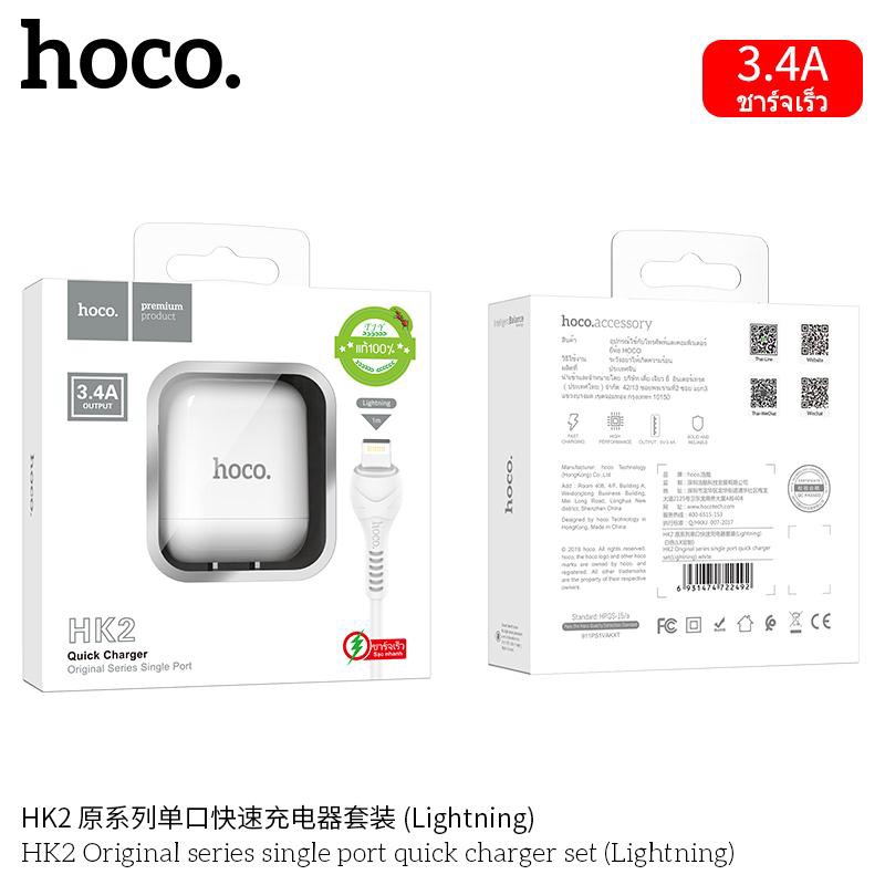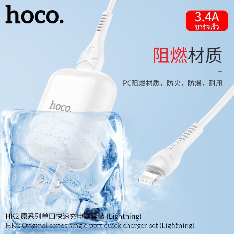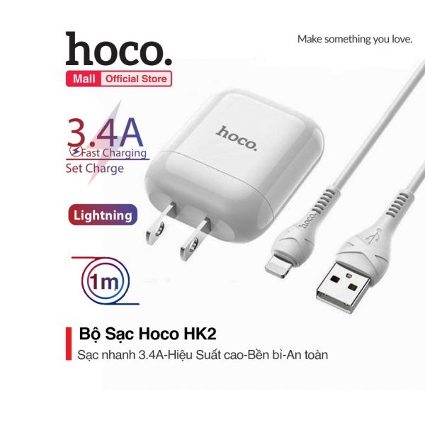 Bộ sạc nhanh 3.4A Hoco HK2 chuôi dẹt chất liệu PC cao cấp kèm dây sạc Lightning dài 1M cho iPhone/iPad
