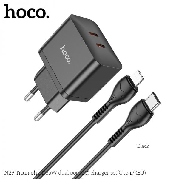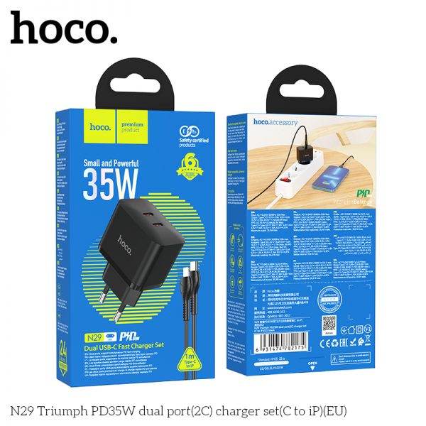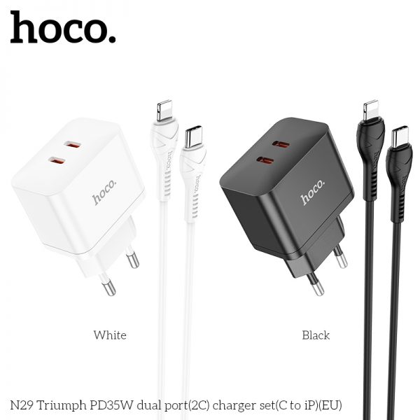 Bộ sạc nhanh PD35w HOCO N29 có thiết kế gọn nhẹ giúp bạn bạn dễ dàng cho thiết bị vào cốp xe, hay túi xách mà không chiếm quá nhiều không gian.