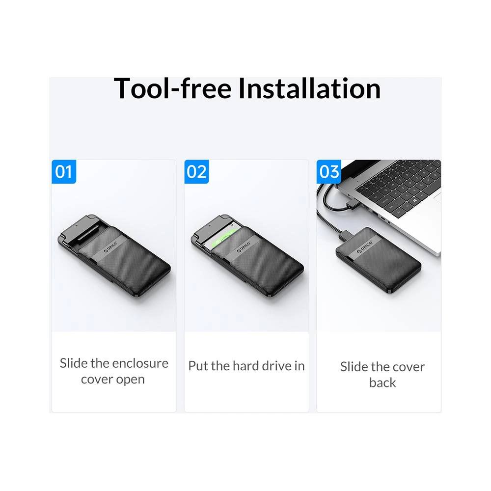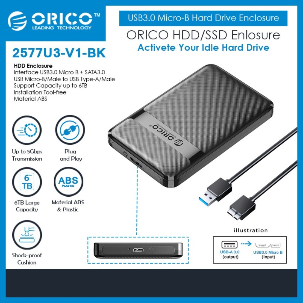 Được thiết kế độc đáo không ốc vít, Box HDD Orico 2577U3-V1 Super Speed USB3.0 2.5 SATA External Hard Drive Enclosure cho phép bạn gắn ổ cứng HDD hoặc SSD 7-9.5mm 2,5 inch. Không cần công cụ hoặc ốc vít khi tháo ráp. Rất tiện lợi khi phải thay ổ cứng liên tục. Box HDD Orico 2577U3-V1 được trang bị Super Speed USB3.0 cung cấp kết nối đáng tin cậy và băng thông tốc độ lên đến 5Gbps, nhanh hơn 10 lần USB2.0 và tương thích với USB2.0, USB1.1 & USB1.0. Plug and Play, Tất cả bạn cần là cắm vào trong máy tính của bạn, không cần Driver, truy xuất cực nhanh Video, Hình ảnh, Âm nhạc và các tập tin bất kể ở nhà, văn phòng hoặc Studio với bất kỳ máy tính để bàn hoặc máy tính xách tay.
