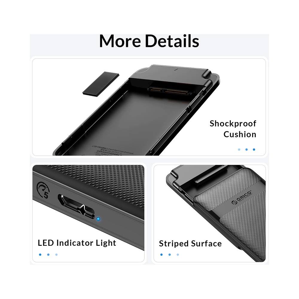 Box HDD Orico 2577U3-V1 tương thích với hệ điều hành Windows, Linux và Mac với dung lượng hỗ trợ lên đến 6TB Sản phẩm bao gồm: