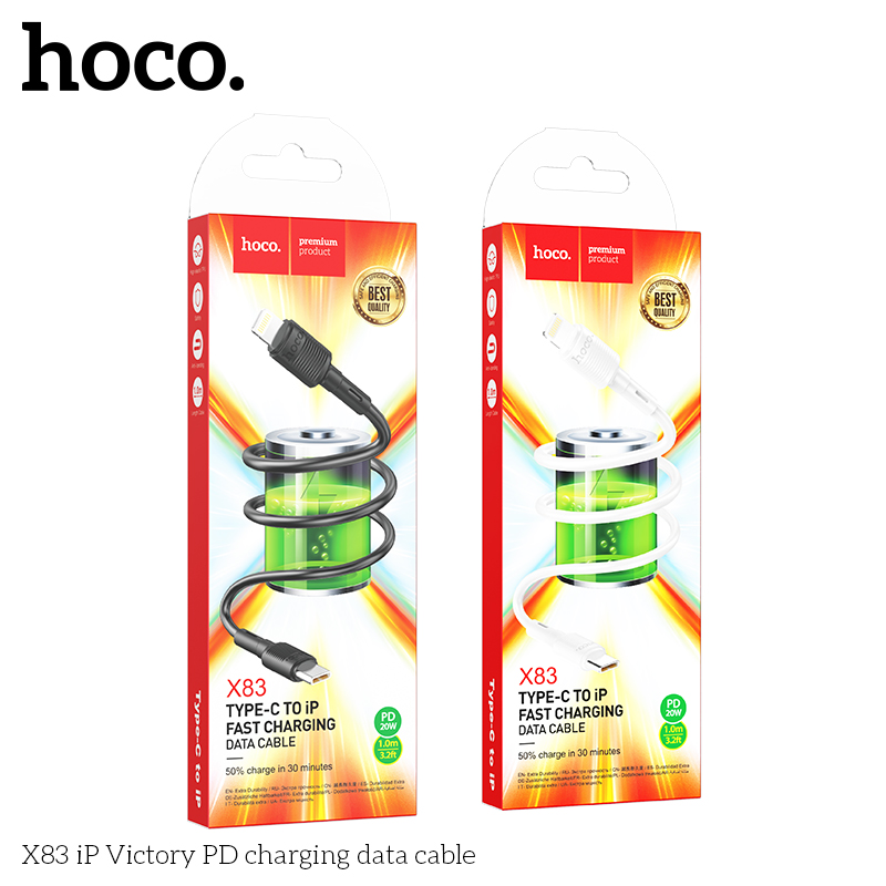 Hoco X83 là sản phẩm cáp sạc nhanh cho iPhone đến từ nhà Hoco. Với độ hoàn thiện cực kỳ cao, sử dụng chất liệu bền bỉ. Hai đầu sạc giao diện Type-C to Lightning với khả năng sạc nhanh 20W cho các dòng iPhone đời mới nhất. Với những ưu điểm trên đây chắc chắn là món phụ kiện điện thoại đáng đầu tư.