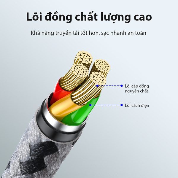 – Đầu cáp vỏ ngoài kim loại và thân cáp được đúc thành khối liền mạch có độ bền cao, công nghệ SR gia cố đầu tiếp xúc, bẻ gập thoải mái không lo đứt gãy.