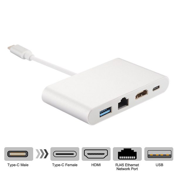 – Bộ chuyển đổi 4 in 1, Chuyển từ cổng Type C sang cổng HDMI, USB, LAN và Type C
