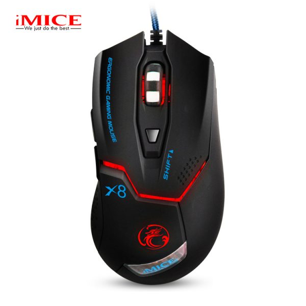 Chuột chơi game IMICE X8 được thiết kế ấn tượng với kiểu dáng đơn giản kèm theo các họa tiết hoa văn mang lại sự bắt mắt cho người dùng. Phiên bản màu đen đem lại sự mạnh mẽ, cá tính với độ dài dây 1,8m giúp bạn di chuyển chuột một cách dễ dàng và thoải mái.