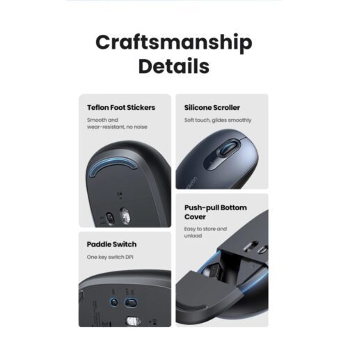 UGREEN MU105 có nút nhấn im lặng silent cung cấp cảm giác phản hồi và độ nhạy như các chuột truyền thống nhưng không gây ra tiếng kêu phiền phức.