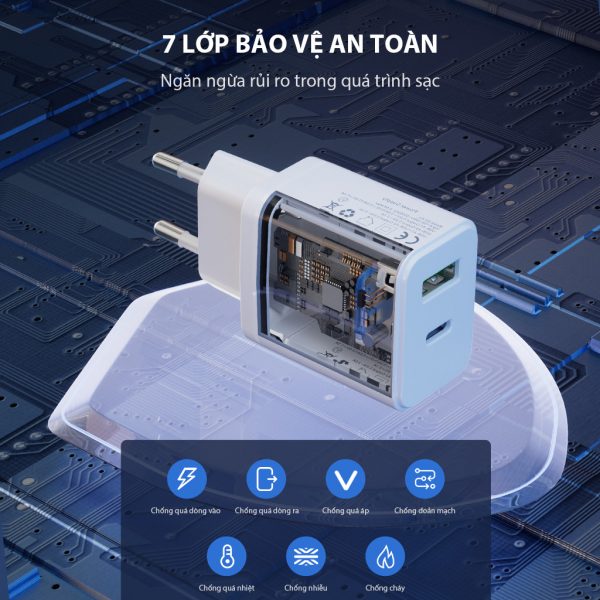 – Sạc đồng thời 2 thiết bị: Tổng nguồn ra 3A với 2 cổng USB-A/Type-C, sạc cùng lúc 2 thiết bị
