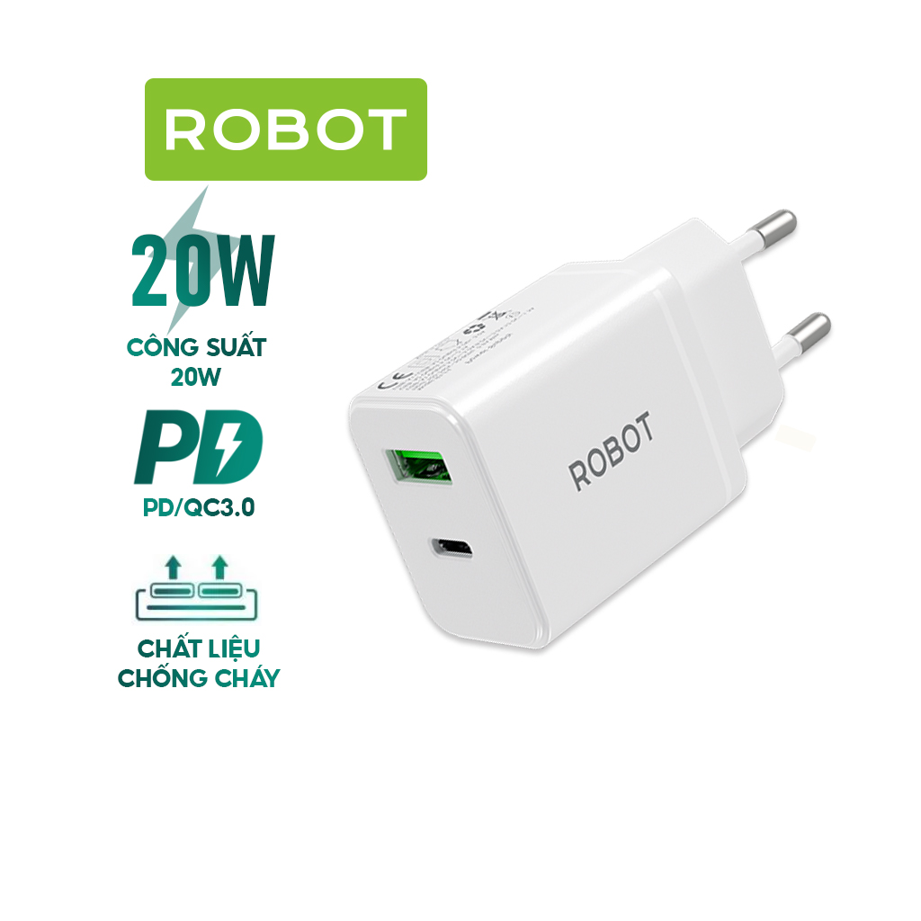 Củ sạc nhanh Robot RT-F5 cốc sạc 2 cổng Type-C USB sạc PD công suất lớn 20W cốc sạc Type C PD iphone 14 13 12 pro max 11 mini 8 plus samsung htc xiaomi asus vivo oppo huawei realme google