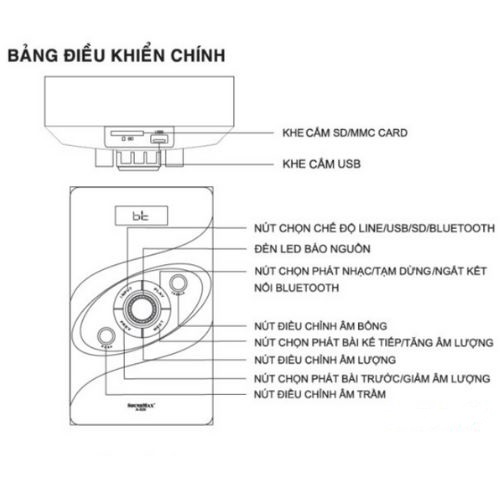 Nếu bạn muốn thay đổi chế độ USB/SD/LINE/Bluetooth, bạn có thể nhấn phím “input” trên loa. Hoặc trên remote để chủ động thay đổi chế độ hoạt động. Thứ tự thay đổi theo vòng lặp sau: USB > SD > LINE/MP3 > BLUETOOTH.