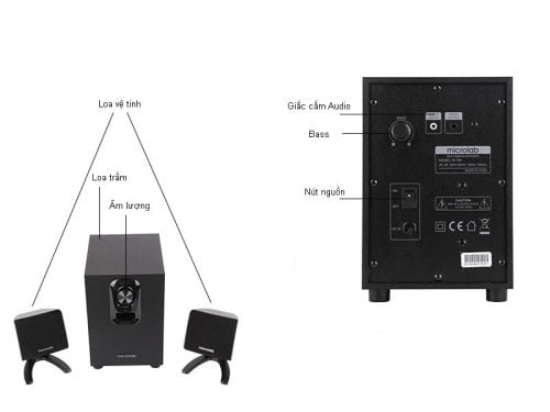 Loa Bass của Microlab M-108 công suất 6W. Âm thanh hài hòa với 2 loa treble: Ngoài việc trang bị loa bass công suất lớn Microlab M-108 còn có thêm 2 loa treble có công suất 5W sẽ là tâm điểm hoàn hảo để các bản nhạc được thêm trong trẻo và hài hòa hơn.
