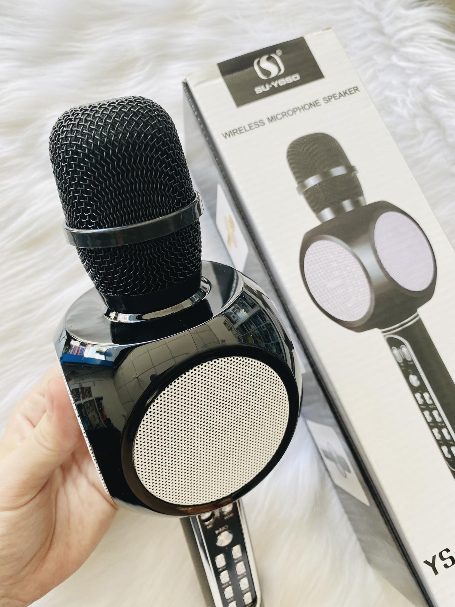 Micro Karaoke Bluetooth YS91 có kiểu dáng hầm hố, kết cấu bền chắc với hợp kim nhựa và kim loại, không quá nặng khi cầm trên tay, thiết kế đẹp mắt cầm rất chắc tay