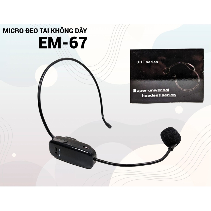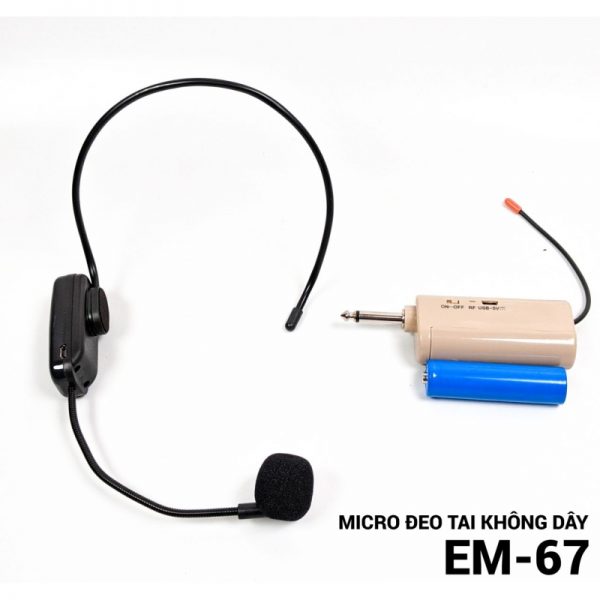 Micro đeo tai EM 67 – Micro thuyết trình trợ giảng không dây UHF – Đầu thu 6.5mm chuyên dùng cho loa mini, loa kéo, máy trợ giảng