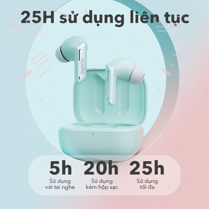 🔵Thời gian sử dụng lên đến 25h ( 5h sử dụng với tai nghe, 20h sử dụng kèm hộp sạc)