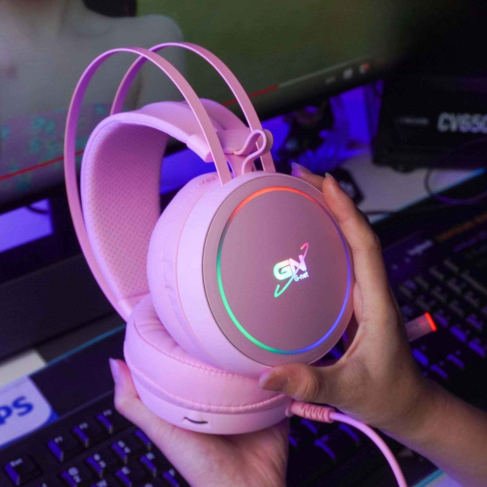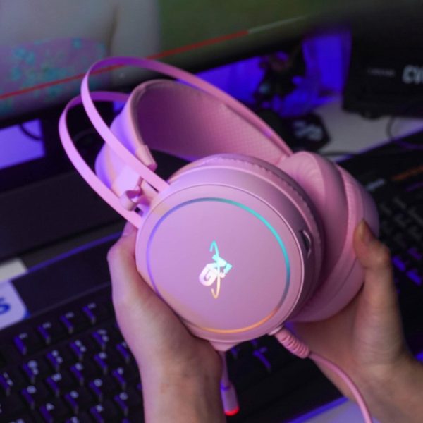 📍 Tai nghe gaming Gnet G09 7.1 Pink thiết kề đẹp ôm trọn đầu , giúp cố định tai và không xê dịch khi sử dụng.